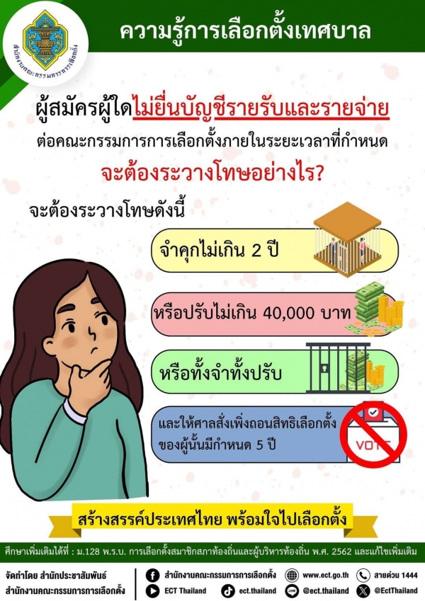 - ผู้สมัครผู้ใดไม่ยื่นบัญชีรายรับและรายจ่ายต่อคณะกรรมการการเลือกตั้งภายในระยะเวลาที่กำหนดจะต้องระวางโทษอย่างไร?
