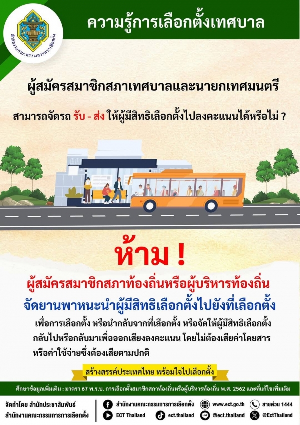 - ผู้สมัครสมาชิกสภาเทศบาลและนายกเทศมนตรีสามารถจัดรถ รับ - ส่ง ให้ผู้มีสิทธิเลือกตั้งไปลงคะแนนได้หรือไม่ ?
