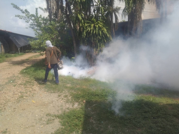 ลงพื้นที่หมู่ 1 บ้านวังศาลา บริเวณเขตติดต่อวังขนาย-ซอยภาคภูมิ ดำเนินการฉีดพ่นหมอกควัน กำจัดแหล่งเพาะพันธ์ลูกน้ำยุงลาย