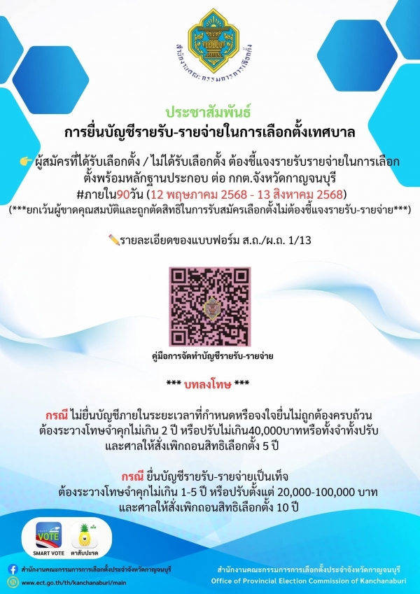 ประชาสัมพันธ์ การยื่นบัญชีรายรับ-รายจ่ายในการเลือกตั้งเทศบาล