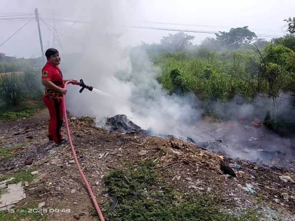 เจ้าหน้าที่งานป้องกันและบรรเทาสาธารณภัย เทศบาลตำบลวังศาลา ลงพื้นที่เนื่องจากได้รับแจ้งเหตุไฟไหม้จุดลักลอบทิ้งขยะและมีกลุ่มควันจำนวนมาก บริเวณริมถนนแสงชูโตสายใหม่(ช่วงตรงข้ามเดอบัวรีสอร์ท) จึงได้นำรถดับเพลิง