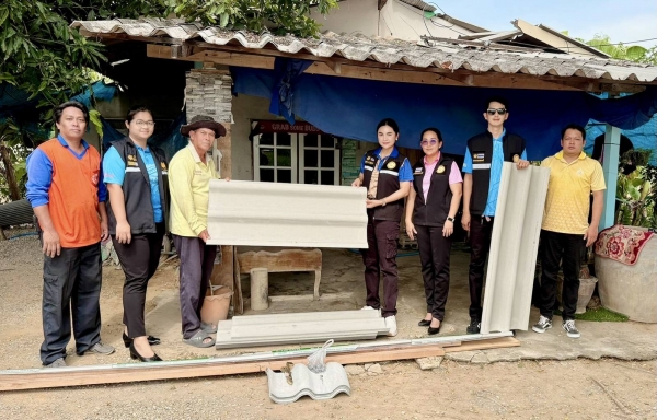 นายกเทศมนตรีตำบลวังศาลา ลงพื้นที่มอบวัสดุซ่อมแซมหลังคาบ้านพักอาศัย ให้กับผู้ประสบวาตภัย