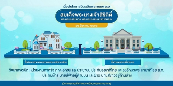 เชิญชวนหน่วยงานภาครัฐ ภาคเอกชน และประชาชน จัดตั้งโต๊ะหมู่ประดิษฐานพระฉายาลักษณ์สมเด็จพระนางเจ้าสิริกิติ์ พระบรมราชินีนาถ พระบรมราชชนนีพันปีหลวง พร้อมเครื่องราชสักการะ จัดตกแต่งสถานที่ โดยประดับพระฉายาลักษณ์สมเด็จพระนางเจ้าสิริกิติ์ พระบรมราชินีนาถ พระบรมราชชนนีพันปีหลวง ประดับธงชาติไทย และธงอักษรพระนามาภิไธย ส.ก. และประดับผ้าระบายสีฟ้าร่วมกับผ้าระบายสีขาว ตามอาคารสถานที่ของหน่วยงานและบ้านเรือน ระหว่างวันที่ ๑ - ๓๑ สิงหาคม ๒๕๖๘