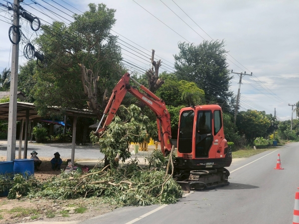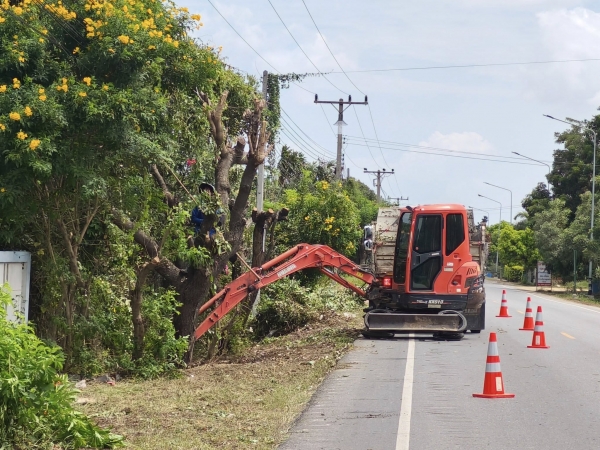 ลงพื้นที่ดำเนินการตัดต้นไม้ กิ่งไม้ เพื่อปรับปรุงภูมิทัศน์สภาพแวดล้อม บริเวณทางเข้าเทศบาลเส้นหนองแจง - ป่าดิบ