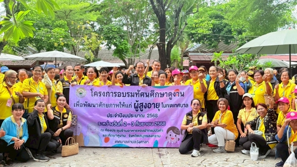 ชมรมผู้สูงอายุตำบลวังศาลา และโรงเรียนผู้สูงอายุเทศบาลตำบลวังศาลา เข้าศึกษาดูงาน ณ โครงการอัมพวาชัยพัฒนานุรักษ์ รับฟัง การบรรยายให้ความรู้การดำเนินงานเกี่ยวกับการส่งเสริมอาชีพเสริมให้กับผู้สูงอายุ