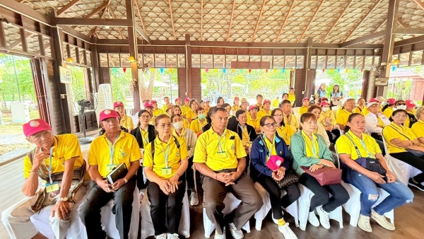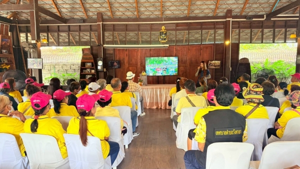 ณ โครงการอัมพวาชัยพัฒนานุรักษ์ รับฟัง การบรรยายให้ความรู้การดำเนินงานเกี่ยวกับการส่งเสริมอาชีพเสริมให้กับผู้สูงอายุ