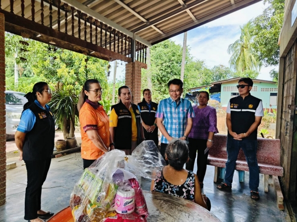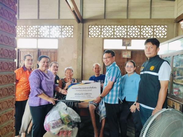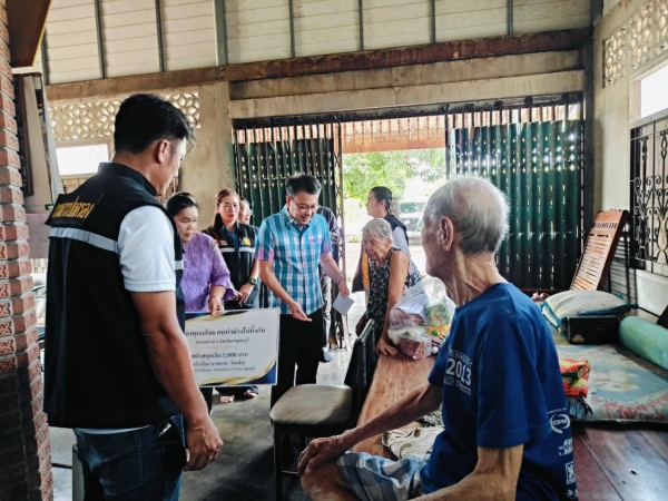 มอบเงินจากกองทุนแก้จนคนท่าม่วงไม่ทิ้งกัน จำนวน 3,000 บาท และถุงยังชีพจากสหกรณ์ออมทรัพย์กรมการพัฒนาชุมชน ให้แก่