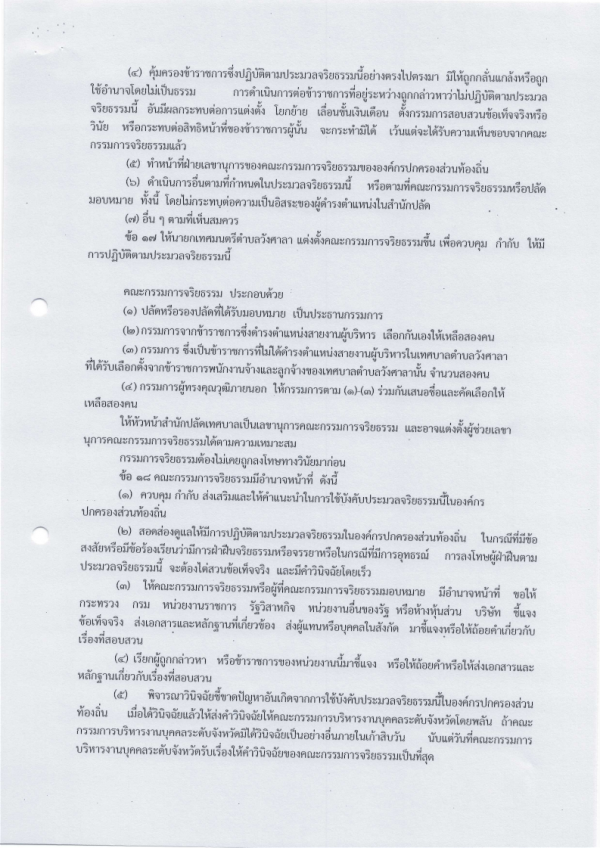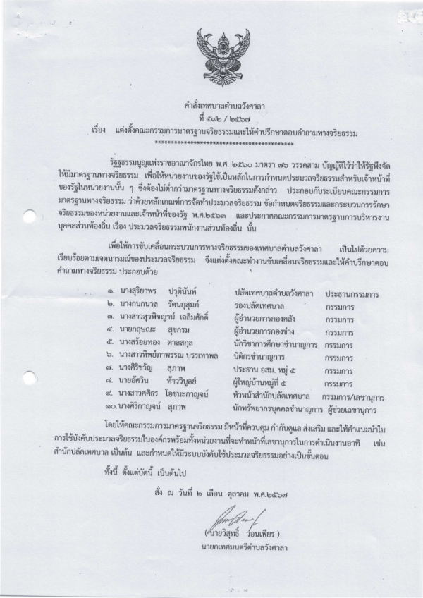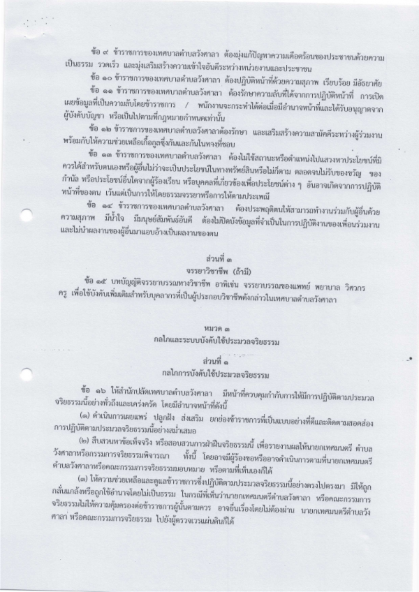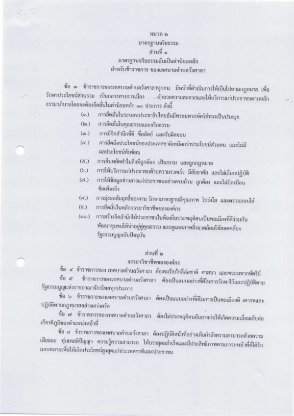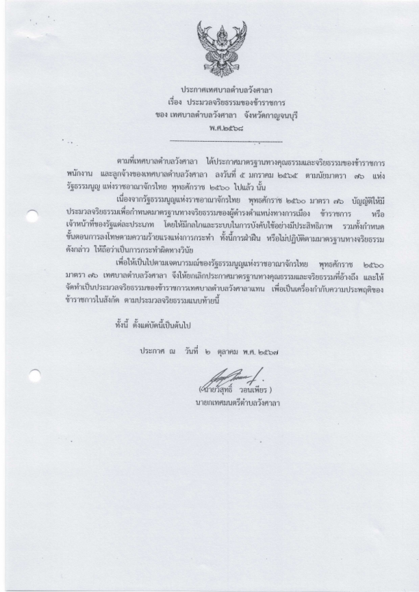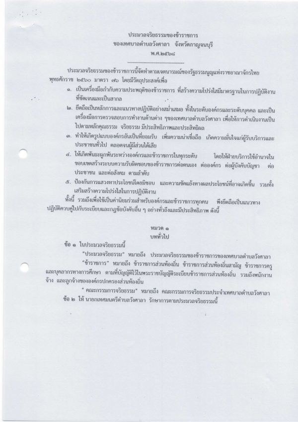 ประกาศเทศบาลตำบลวังสาลา เรื่องประมวลจริยธรรมของข้าราชการ ของเทศบาลตำบลวังศาลา