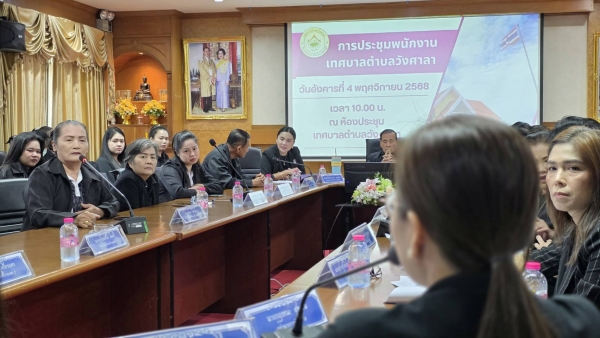 จัดประชุม พนักงานเทศบาลตำบลวังศาลา ประจำเดือน พฤศจิกายน 2568 โดยมี คณะผู้บริหาร สมาชิกสภาเทศบาล หัวหน้าส่วนราชการ พนักงาน ลูกจ้าง และพนักงานจ้างเทศบาล เข้าร่วมประชุม ก่อนการประชุมได้แนะนำข้าราชการโอนย้าย