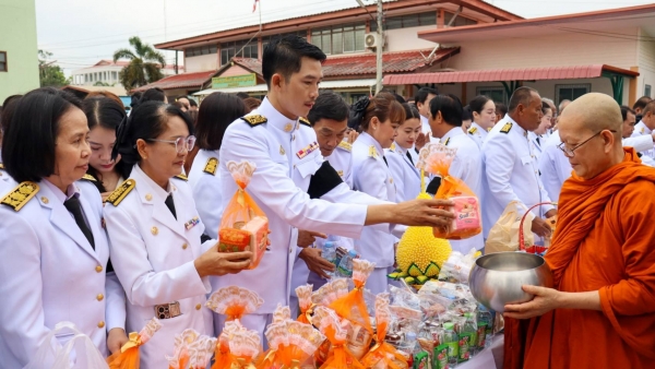 เวลา 07.00 น. พิธีเจริญพระพุทธมนต์-ทำบุญตักบาตรถวายพระราชกุศล