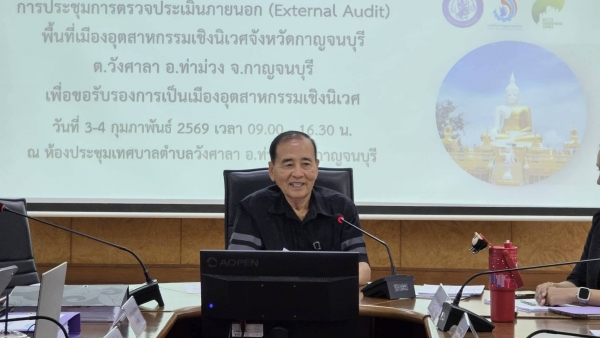 ด้วยกรมโรงงานอุตสาหกรรมกำหนดการตรวจประเมินด้วยกระบวนการตรวจประเมินภายนอก (External Audit) ตามเกณฑ์ข้อกำหนดเมืองอุตสาหกรรมเชิงนิเวศฉบับปรับปรุง ปีพ.ศ 2565 พื้นที่เมืองอุตสาหกรรมเชิงนิเวศตำบลวังศาลาอำเภอท่าม่วง จังหวัดกาญจนบุรี เพื่อตรวจประเมินเอกสารและหลักฐานของพื้นที่ดังกล่าว